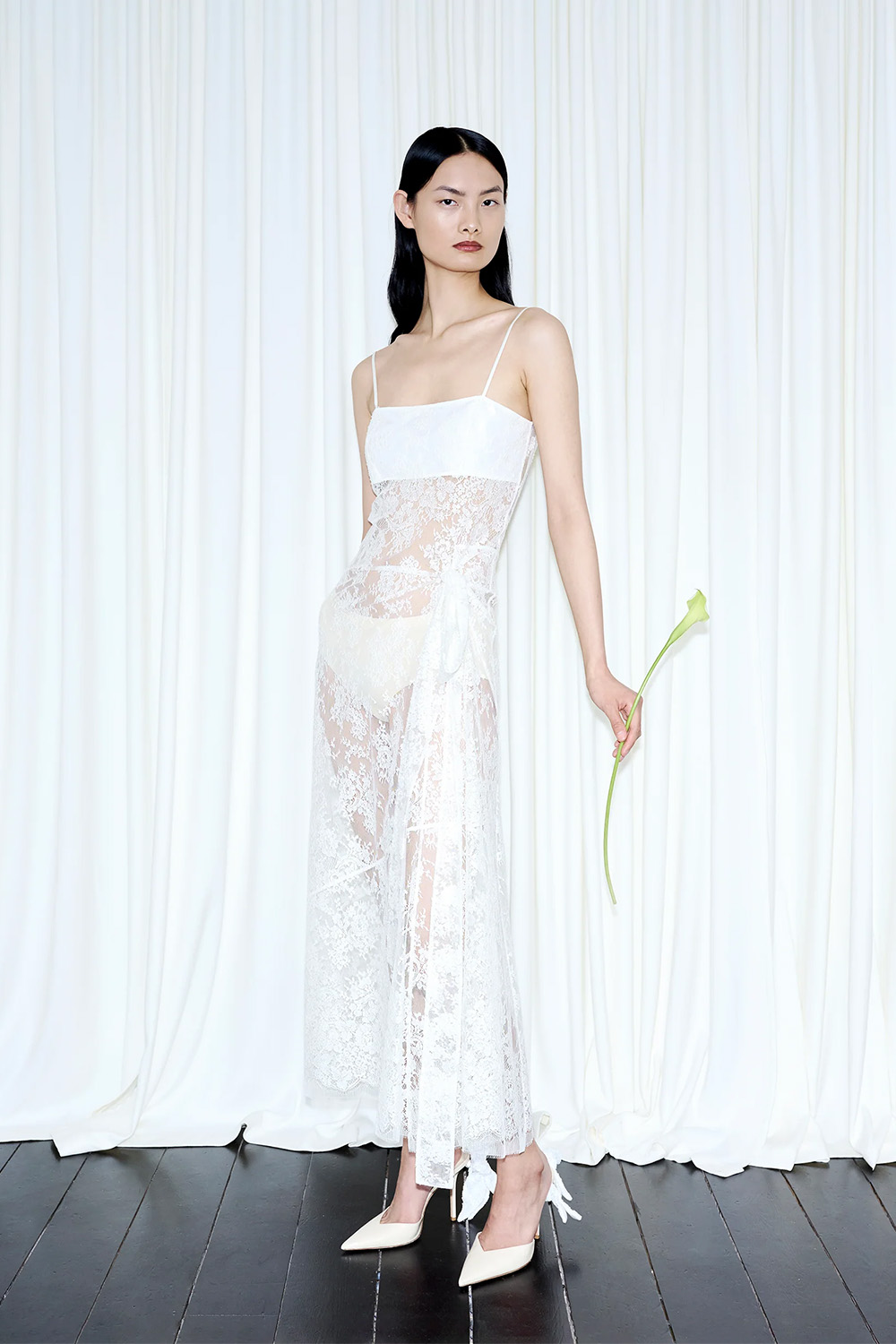This year saw BODE team up with SSENSE on the SSENSE Exclusive Bridal Capsule, including the Off-White Harbour Maxi Dress, made from silk satin and nylon tulle with intricate panelling, layered construction, and a straight neckline. With button detailing at the front and an a-line skirt, this sweet and classic design is sure to be a timeless pick for your day down the aisle.