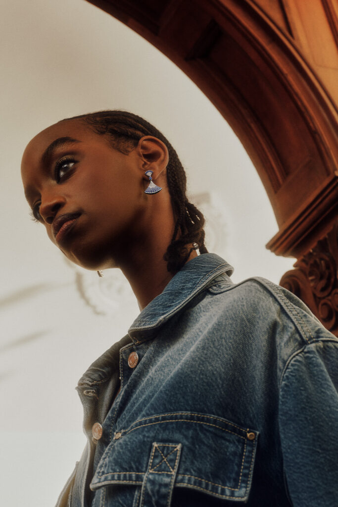 JUMPSUIT BY GUESS; EARRINGS BY BVLGARI.