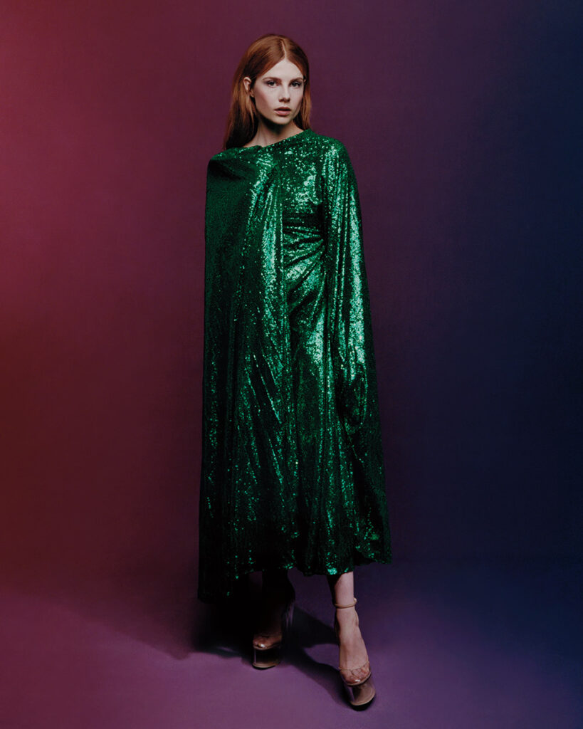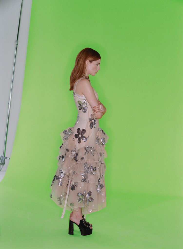 Dress and necklace by Simone Rocha; ring by David Morris; shoes by Gina.