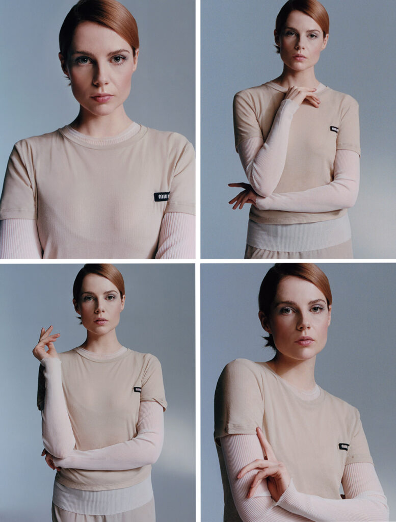 Offscreen, fashion plays a big part of Boynton’s life too. “I think it’s such a form of self-expression, and I really love using it as such,” she says. She describes a closet as full of Victorian nightdresses as it is with leather jackets. “I love the acceptance that you’re everything and you can be anything, whether that’s reflecting how you actually feel or aspirational to how you want to feel.” On the red carpet, she is often in eclectic looks—from the glittering Prada gown she paired with a teal bob at the 2019 Met Gala to the sheer, feathered, mint green Valentino gown she wore to the Toronto International Film Festival premiere of Chevalier this past September. When we chat, Boynton is wearing jeans and a vintage jumper. “Whatever that says about me,” she says with a laugh. The actress’s innate sense of style no doubt led to her being named as a CHANEL ambassador in 2020, a job she relishes. “I think I had a very different idea of fashion before I’d ever attended those shows. And then you understand it as walking art, knowing the intricacy and hours that go into creating each piece. It’s just fascinating,” she says.