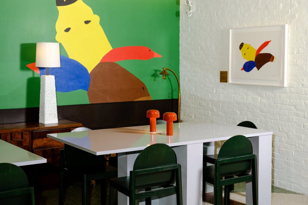 “Art is not singular,” says Mulvihill, whose own home is as exuberantly embellished with art and beautiful things as the private and public spaces she has curated. “Sometimes I struggle with seeing art in a white wall gallery, so out of context.” Integrating art into everyday life, she says, “can be so transformative. The layering and combination of all those things, it creates a magic.”