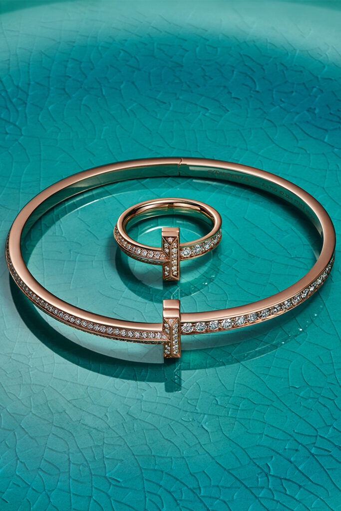 Tiffany & Co. describes its iconic T Collection as a talisman of strength, “Tiffany T1 represents individual courage and power.” The clean, intersecting lines of the T1 narrow-hinge bangle, with rose gold and pavé diamonds, and the matching T1 narrow ring create a uniformed and powerful statement. The diamonds add a striking radiance to offset the smooth gold in each piece. The T1 narrow circle pendant evokes love’s endless potential with its infinite circular design. The T Collection is both bold and graphic, as well as elegant, and each design can be layered or left alone to create a statement—a perfect way to set the tone for your ideal year.