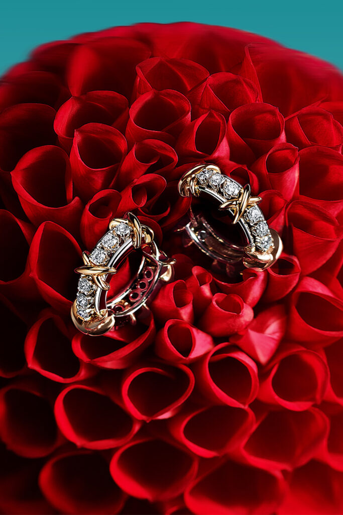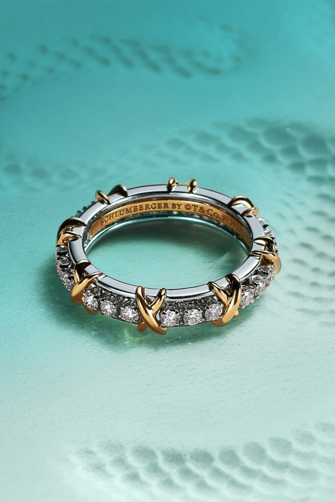 Jean Sclumberger’s Sixteen Stone designs remain as awe-inspiring as they were in 1959 when first created. A man known for understanding the miraculous nature of jewels, Sclumberger’s Sixteen Stone narrow ring and earrings—both set in classic yellow gold, with glittering diamonds—offer a timeless elegance that embraces a more is more approach. These items are uniquely special, setting the theme for a year where anything could happen. The Sixteen Stone narrow ring, and matching narrow earrings set, mimic a subtle XO shape with 18k yellow gold cross-stitching against the round-cut diamonds and platinum setting. The affectionate design celebrates the nurturing aspect of love.