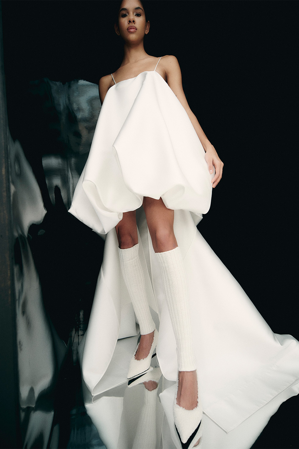 For their latest collection, the duo went back to their roots. “It was this moment where we dug into our archives, and it’s some things that people have never seen,” says Trinh. “There were all of these things we developed and were so excited about at some point, and they just never got anywhere,” she says of the collection, which includes sheer fabrics, structured cuts and contrasting black embellishments. “I think through that connection was an amalgamation of all these ideas we created over the past four or five years, and it is this collection. Aesthetically, it felt very strong for the brand.”